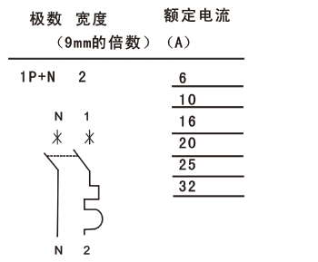 額定電流: (30℃)6A,lOA,16A,20A,25A,32A