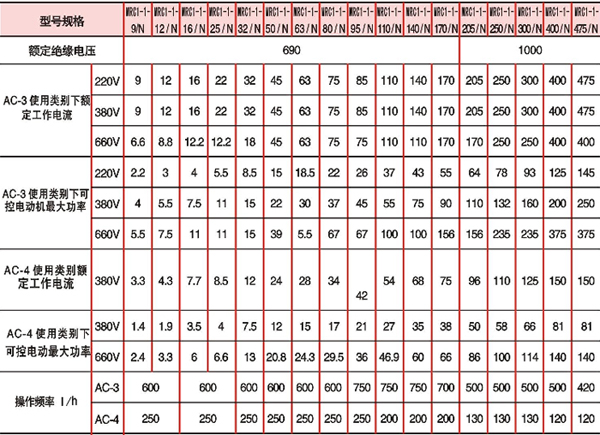 注:1.AC-3使用類別典型用途舉例:籠型感應電動機的起動、運轉中分斷。