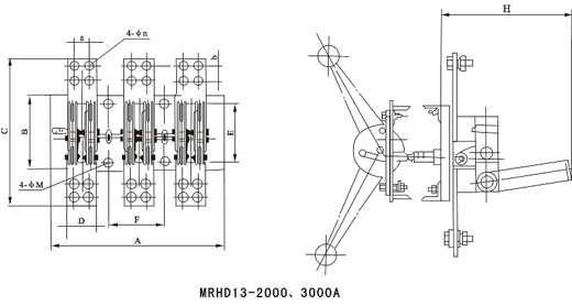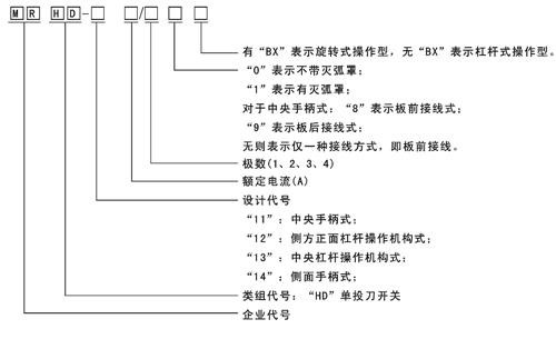 MRHD系列單投刀開關(guān)適用于交流50Hz、額定電壓至380V、直流至220V,額定電流至3000A的成套配電裝置中,作為不頻繁地手動接通和分斷交、直流電路或作隔離開關(guān)用。其中: