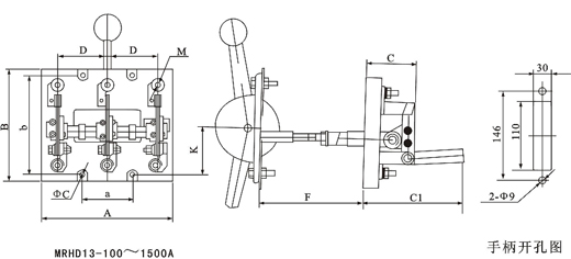 1.4側(cè)方正面操作機構(gòu)式刀開關(guān)主要用于正面操作、前面維修的開關(guān)柜中,操作機構(gòu)可以在柜的兩則安裝。