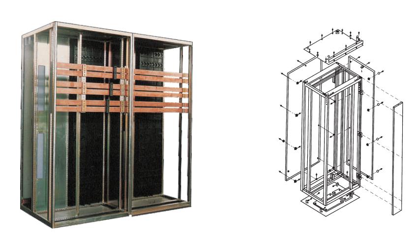 柜體基本結(jié)構(gòu)為本公司適用組合式結(jié)構(gòu).以C型型材(基本模數(shù)E=25mm)為主要結(jié)構(gòu)件,采用鎖緊自攻螺釘和8.8級高強(qiáng)度螺栓緊固而成,因而柜體精度高、剛性好、接地連續(xù)性好。