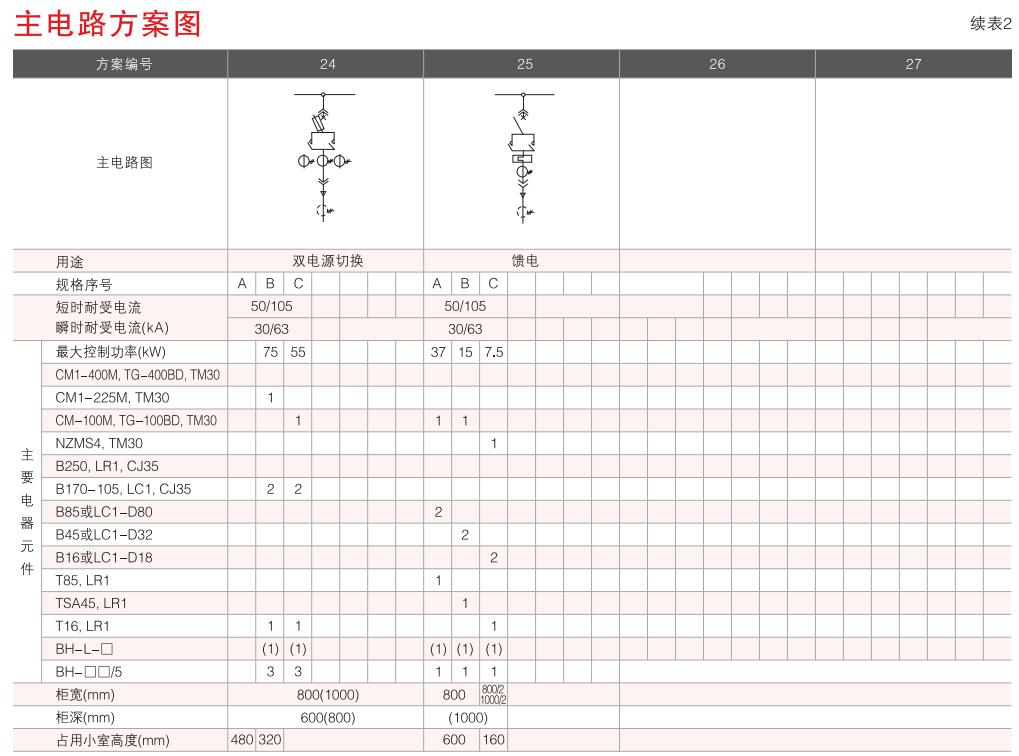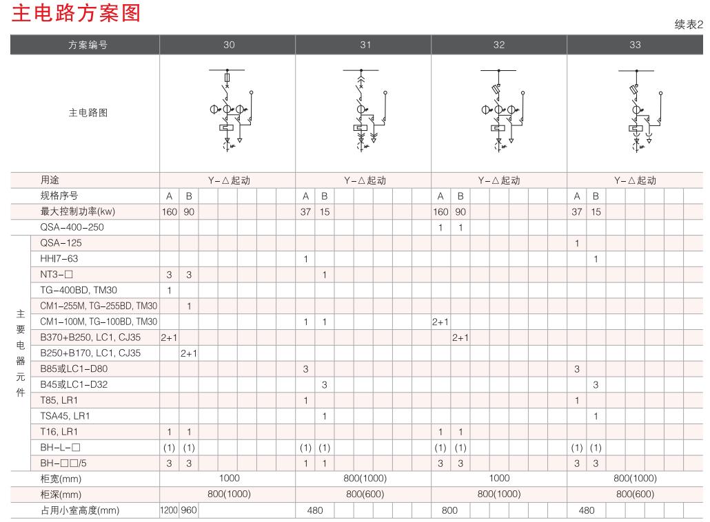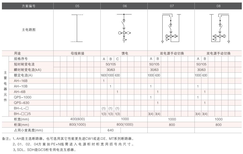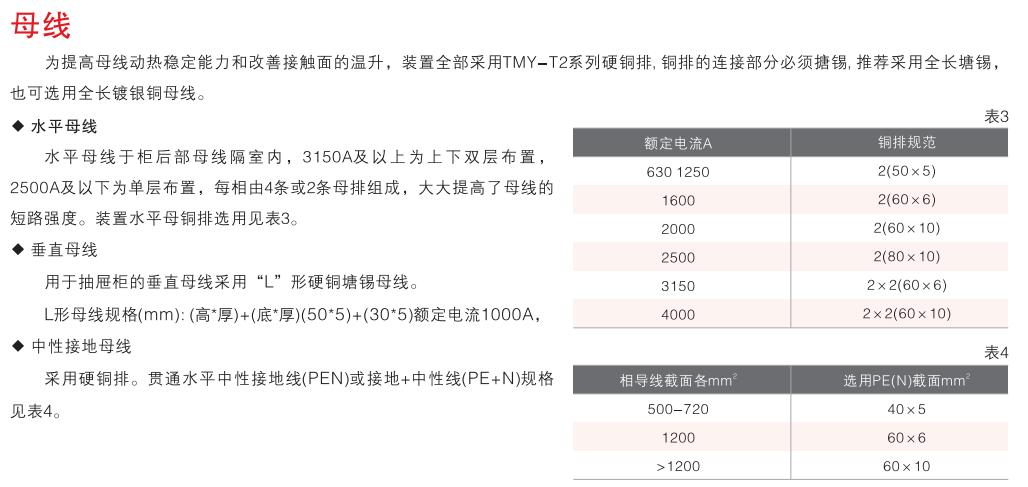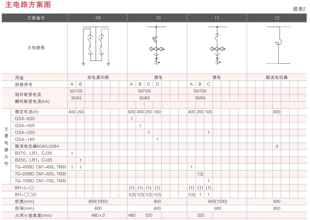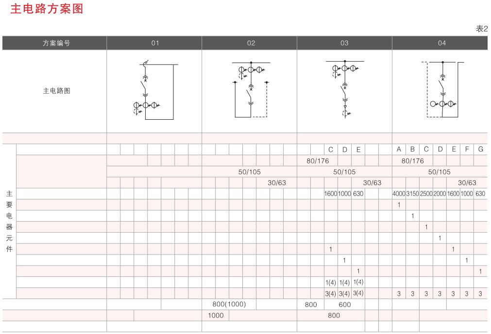 開關(guān)設(shè)備主電路方案共32組118個規(guī)格(見表2).不包括由于輔助電路的控制與保護(hù)的變化而派生的方案和規(guī)格。包括了發(fā)電、供用電和其它電力用戶的需要,額定工作電流為4000A,適合2500kVA及以下的配電變壓器選用。